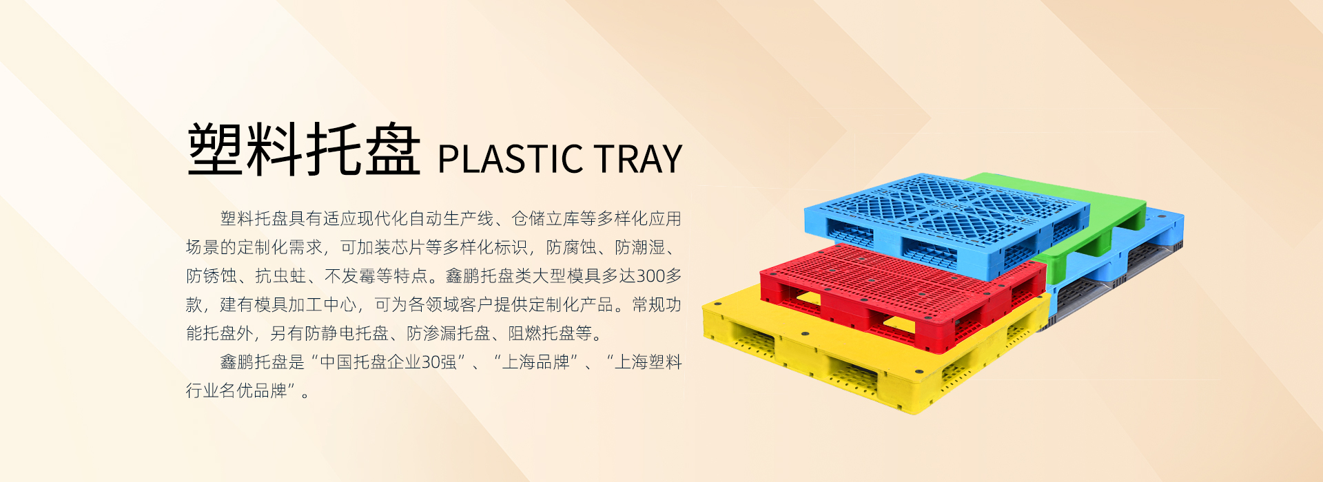上海鑫鵬塑料創(chuàng)始于1987年,始終專注深根塑料產(chǎn)業(yè)鏈,業(yè)務(wù)板塊包括:塑料原料貿(mào)易、塑料制品研發(fā)制造(塑料托盤、塑料箱筐、卡板箱、環(huán)衛(wèi)桶等)。現(xiàn)全國有5個(gè)生產(chǎn)基地:上海2個(gè)、四川1個(gè)、江蘇2個(gè)。